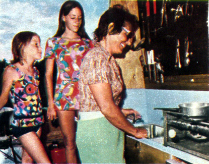 up front, room for a 4 1/2-cu.ft. fridge, sink and two-burner stove in