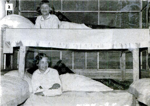 handling them like bureau drawers. Hinged side walls of bunks then are
